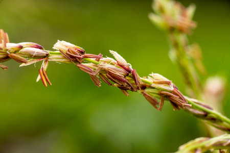 Delicate green spikes of grass bloom, capturing the essence of summer's vibrant beauty.