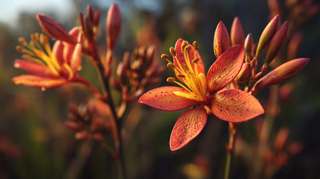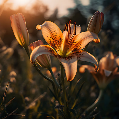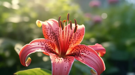 An AI generated illustration of a vibrant Lily lanceolate (Lilium lancifolium) in sunlight