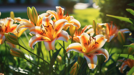 Vibrant Orange Lily Blooms Radiating in the Soft Sunlight