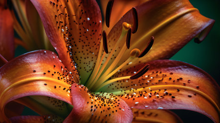 A macro shot of a vibrant orange tiger lily, with its spotted petals and graceful curves, against a blurred green background