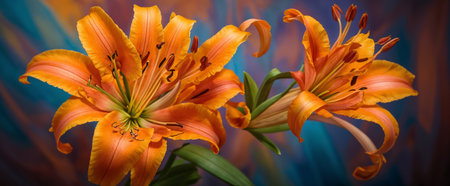 AI Generated. Orange Lily Bouquet with a Teal Background