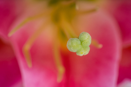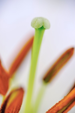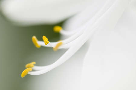 abstract appearance of a white flower with pistil and stamens, note shallow depth of field