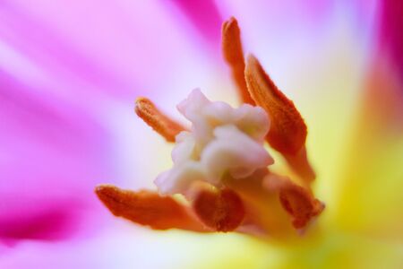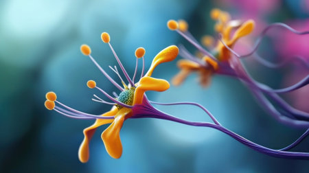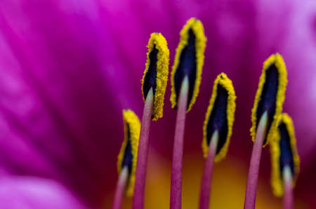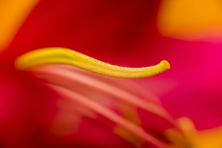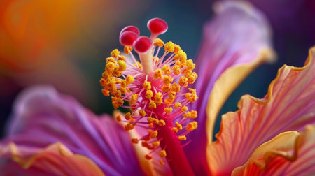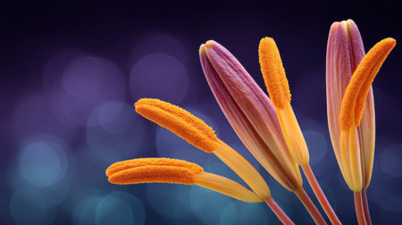 This macro image showcases vibrant flower stamen with rich colors against a soft bokeh background. Ideal for nature projects, floral designs, and artistic expressions.