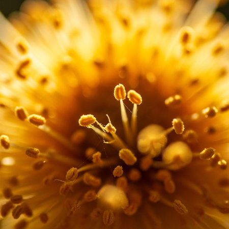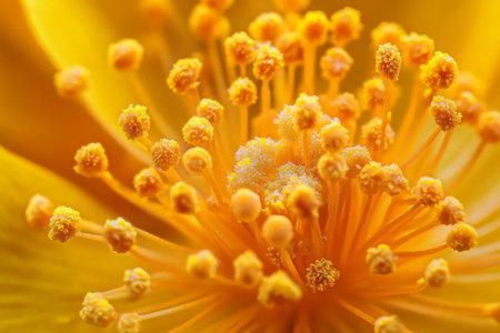 Vibrant Close up of Golden Flower Stamens Pollen Macro Photography Nature Detail