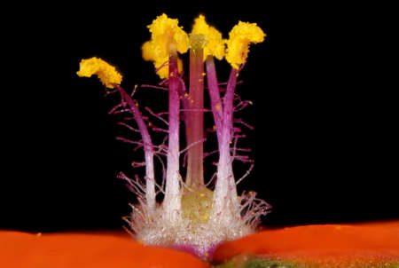Scarlet Pimpernel (Anagallis arvensis). Pistil and Stamens Closeup