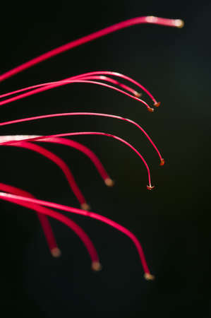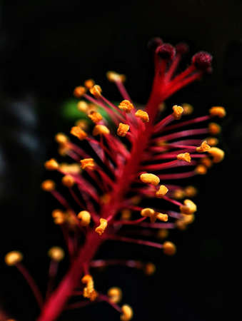 Macro shot of the stamen and stigma of China Rose( Hibiscus rosa-sinensis ) with a black background using a 20x Macro lens.