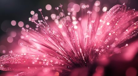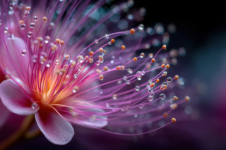 Closeup of a vibrant pink flower with water droplets on a dark background