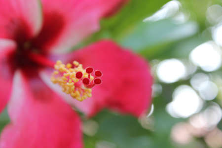 Close up flower photo of beautiful dainty pink hibiscus stamen