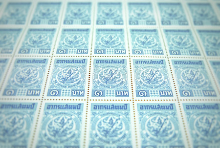 Chiang rai, Thailand - May 21, 2018: Revenue postage , 1 baht revenue postage duty of the Revenue Department, Thailand