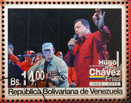 BOLIVARIAN REPUBLIC OF VENEZUELA - CIRCA 2013: A stamp printed in Venezuela shows Hugo Rafael Chavez (1954-2013), President of Venezuela, circa 2013