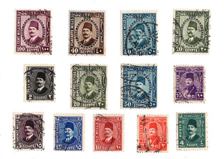 Cairo, Egypt September 21 2022: background of various old used postage stamps from different countries and times on a wooden background, a cover with a set of postage stamps, old vintage retro stamps
