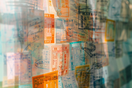 Vivid Collection of Passport Stamps in Bright Natural Daylight for Travel Inspiration