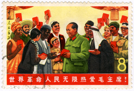 USSR - CIRCA 1977: A stamp printed in the USSR, shows a group of people at a rally meeting, the inscription people and the party united, Party, constitution of the USSR in 1977 , circa 1977