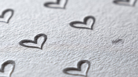 This close-up image features imprinted hearts on textured paper, showcasing a delicate and artistic design. Ideal for romantic and creative projects.