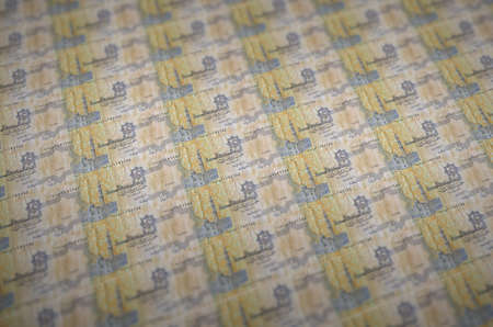 25 Egyptian piastres bills printed in illegal money production conveyor. Collage of many fake bills. Concept of counterfeitters mass work