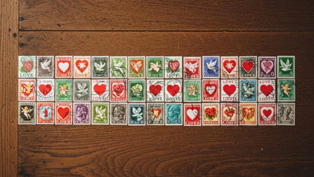vintage stamps displayed in an organized album, created with generative ai