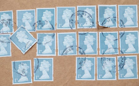 Great Britain postage stamps on white background.