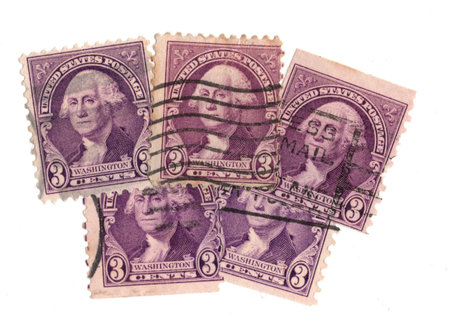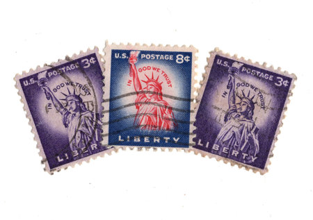 Vintage postage stamps from the USA isolated on a white background.