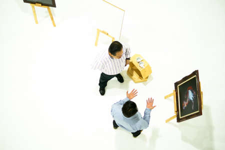 Graphic background of multiple people taking smartphone photos of painting at modern art gallery exhibition, copy space