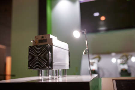 Cryptocurrency mining equipment - ASIC - application specific integrated circuit on farm stand