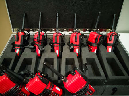 Professional shooting equipment on film set close up