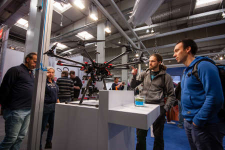 HANNOVER, GERMANY - MARCH 14, 2016: Drone displayed at CeBIT information technology trade show in Hannover, Germany on March 14, 2016.
