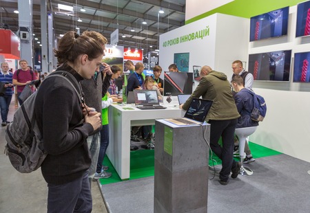 KIEV, UKRAINE - OCTOBER 07, 2017: People visit Acer, a Taiwan based international computer company booth during CEE 2017, the largest electronics trade show of Ukraine in ExpoPlaza Exhibition Center.