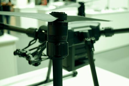 black drone propeller close-up view and blurred background