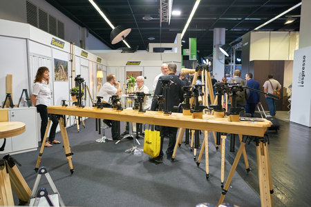 COLOGNE, GERMANY - SEPTEMBER 19, 2014: Photokina Exhibition interior. The Photokina is the world's largest trade fair for the photographic and imaging industries