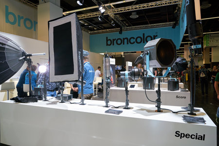 COLOGNE, GERMANY - CIRCA SEPTEMBER, 2018: Broncolor space at Photokina Exhibition. Photokina is a trade fair held in Europe for the photographic and imaging industries.