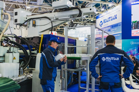 Moscow, Russia - January 28-31, 2020: International specialized exhibition of plastics and rubbers. Expo products manufacturing and recycling