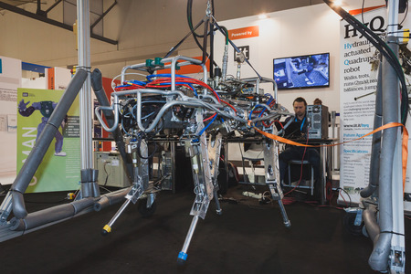 MILAN, ITALY - MAY 7: HyQ robot on display at Solarexpo, international exhibition for promoting innovative and renewable energy technology on MAY 7, 2014 in Milan.