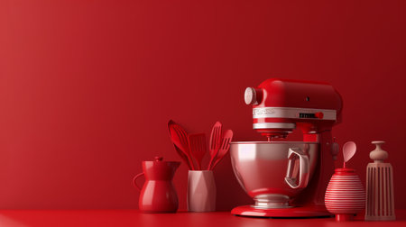 Modern red mixer in kitchen. Blurred background. 3D Rendering