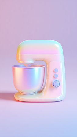 A beautiful iridescent stand mixer, perfect for baking and culinary tasks. This appliance adds a touch of elegance to any kitchen.