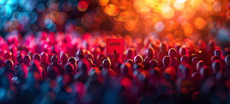 Single VOTE sign stands out in a sea of blurred figures. A bold call to action amidst a crowd. Concept of elections, democratic influence, election importance, and the power of one vote. Art. Banner