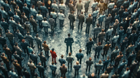 Standing Out in the Crowd - Unique Individual Among Diverse Figures, Leadership Concept