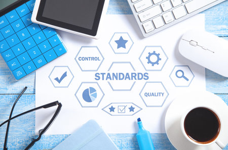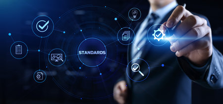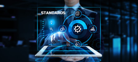 Standards compliant check, Quality assurance and control. Business and technology concept.