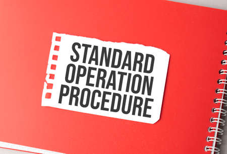 The word Standard Operation Procedure on torn paper on red notepad ,.