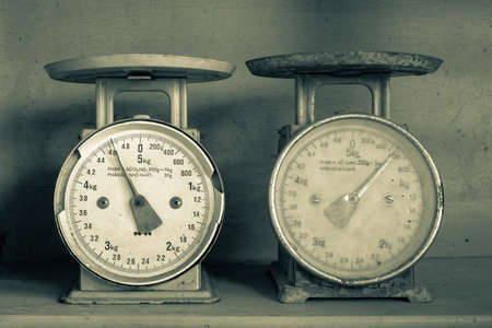 Close-up shot of retro and vintage scale or balance indicating weight in kilo.