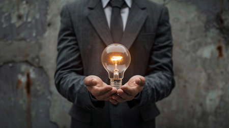 revolutionary concept innovating with electric bulb in hand for creative solutions and brainstorming