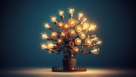 A 3D render illustration of a tree with a lot of light bulbs