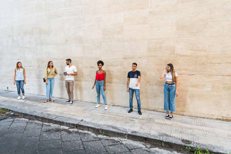 Young people from different cultures keeping social distance - Corona virus social distance concept