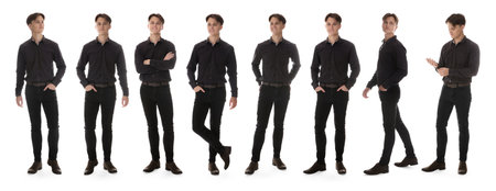 Full Length Portrait of Caucasian Man in Casual Clothing Posing Against White Background. Horizontal Image