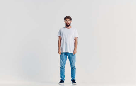 man in white t-shirt movement positive light background