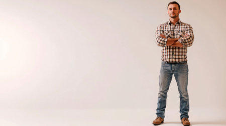 full body of farmer posing on white background on left side , Concept for business success
