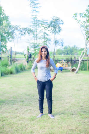 Asian Woman in Park at Phayao Province, Thailand.