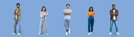 Diverse group of people showcasing lifestyle and unity against a blue background