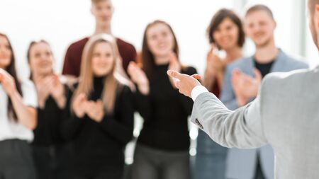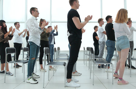 Ovation concept for the success and achievement. Group of people clapping on a business conference.