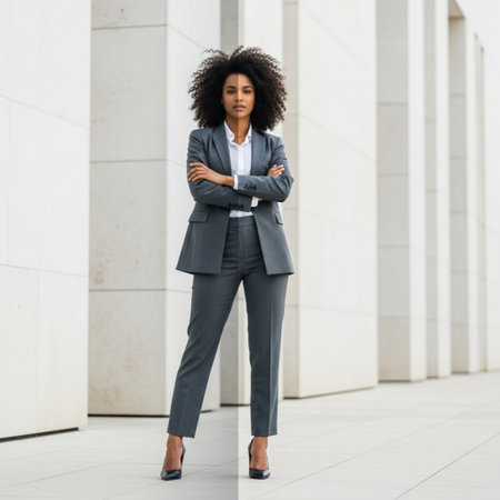 Full length portrait of a young african american business woman standing with arms crossed