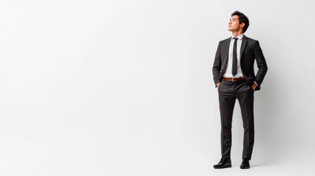 full body of Businessman in suit posing on white background on left side , Concept for business success or corporate executive in the style of copy space
